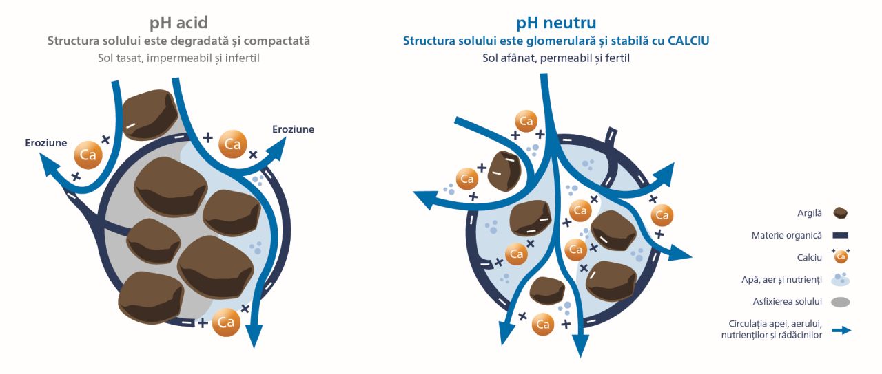 Calciul îmbunătățește textura solului, activitatea biologică și disponibilitatea nutrienților.