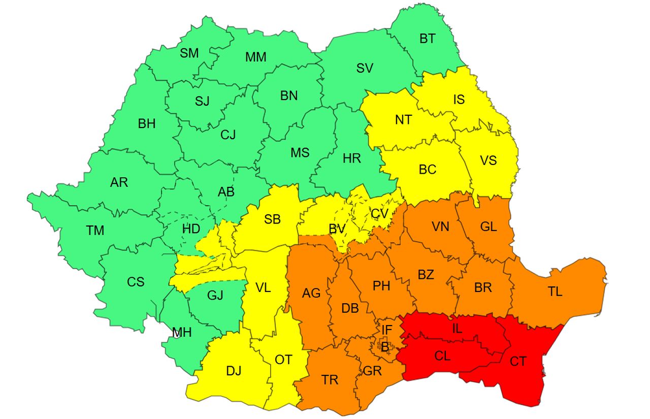 Trei județe intră de mâine seară, de la ora 21:00, sub cod roșu de ploi abundente. Până miercuri, pe 8 octombrie, la ora 23:00, în județele Constanța, Călărași și Ialomița va ploua abundent, iar în intervale scurte de timp sau prin acumulare vor fi cantități de apă de 110…120 l/mp.