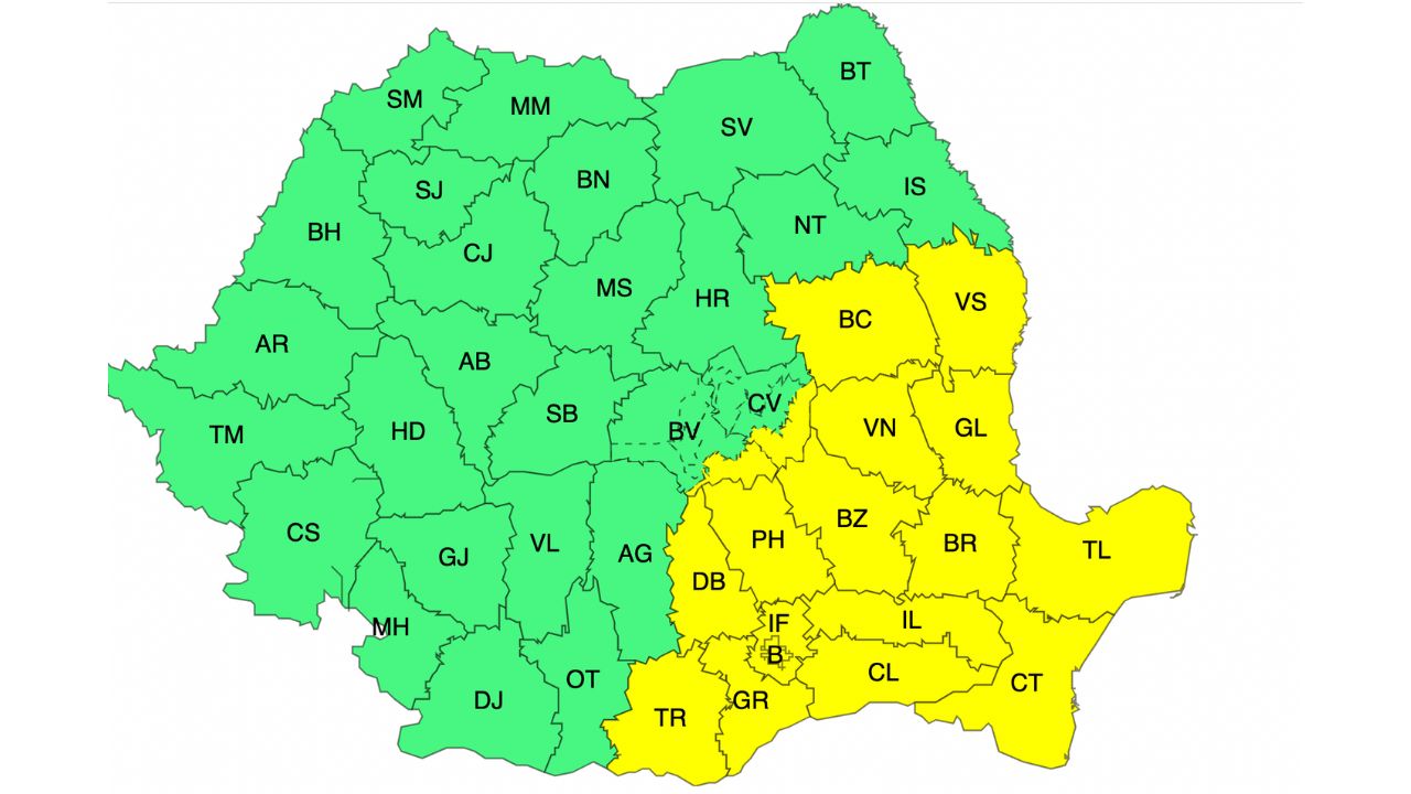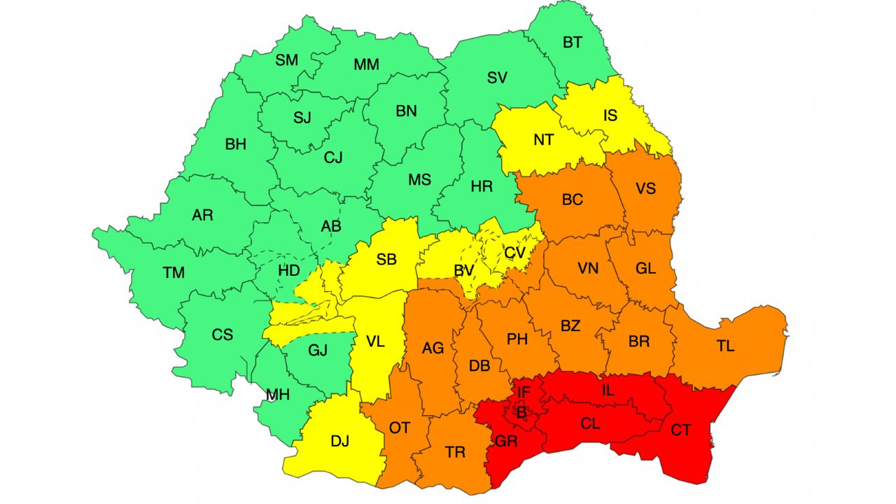 Zone afectate: județele Constanța, Călărași, Ialomița, Giurgiu, Ilfov și în municipiul București