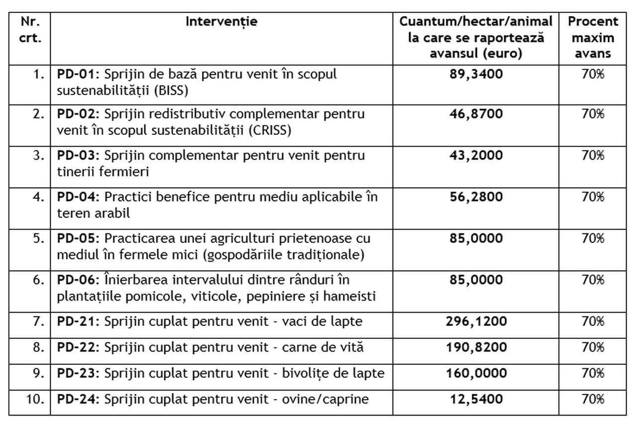 Avansul APIA 2025 a început. Cuantumuri la plată
