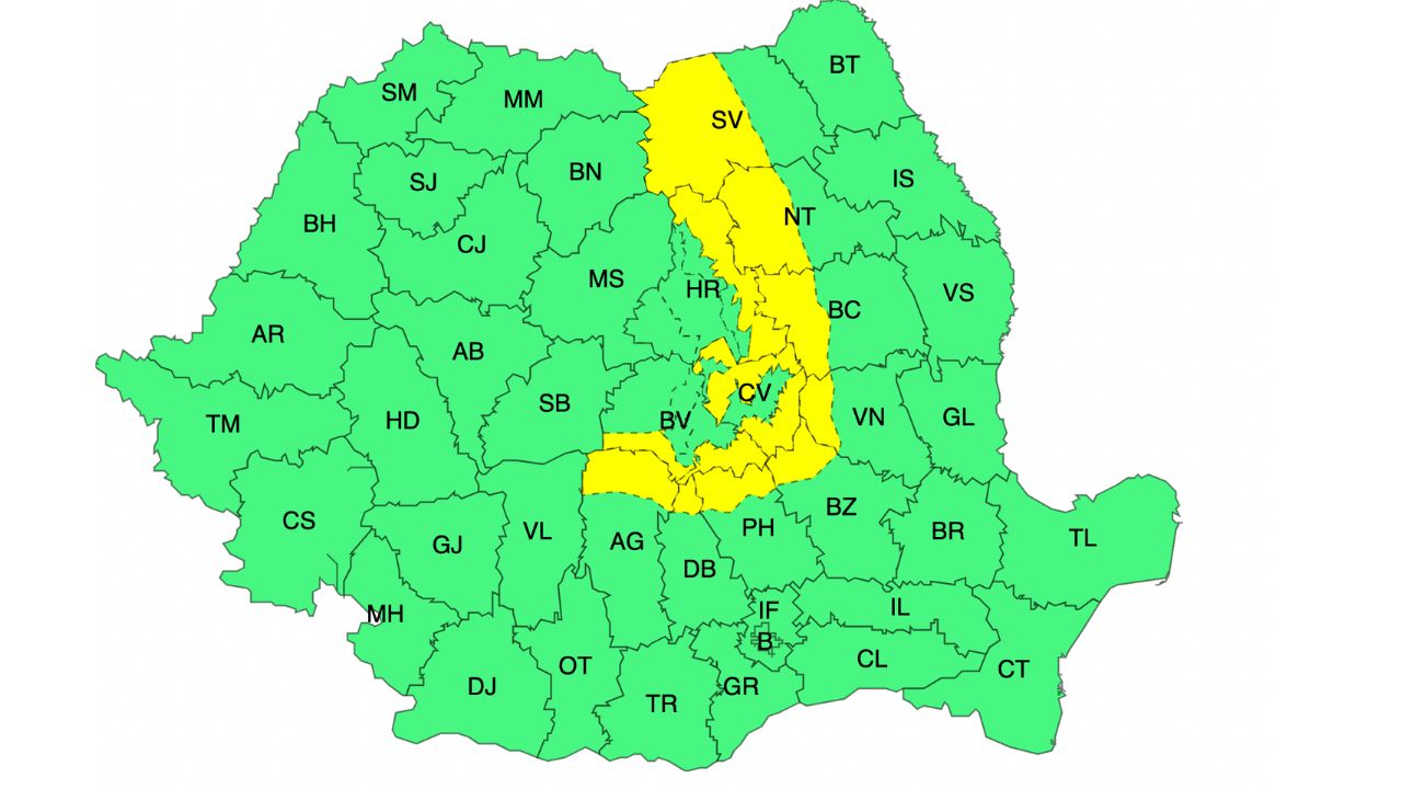 Vântul va bate cu putere în acest weekend. Administrația Națională de Meteorologie (ANM), continuă să emită avertizări privind intensificări ale vântului în multe județe din țară. Pentru astăzi, vineri – 24 octombrie, este valabil cod galben de intensificări ale vântului în Banat, Crișana, Maramureș, Transilvania, Oltenia, vestul și centrul Munteniei, Dobrogea și în zonele de munte. Mâine, fenomenul se restrânge și va afecta mai puține zone.