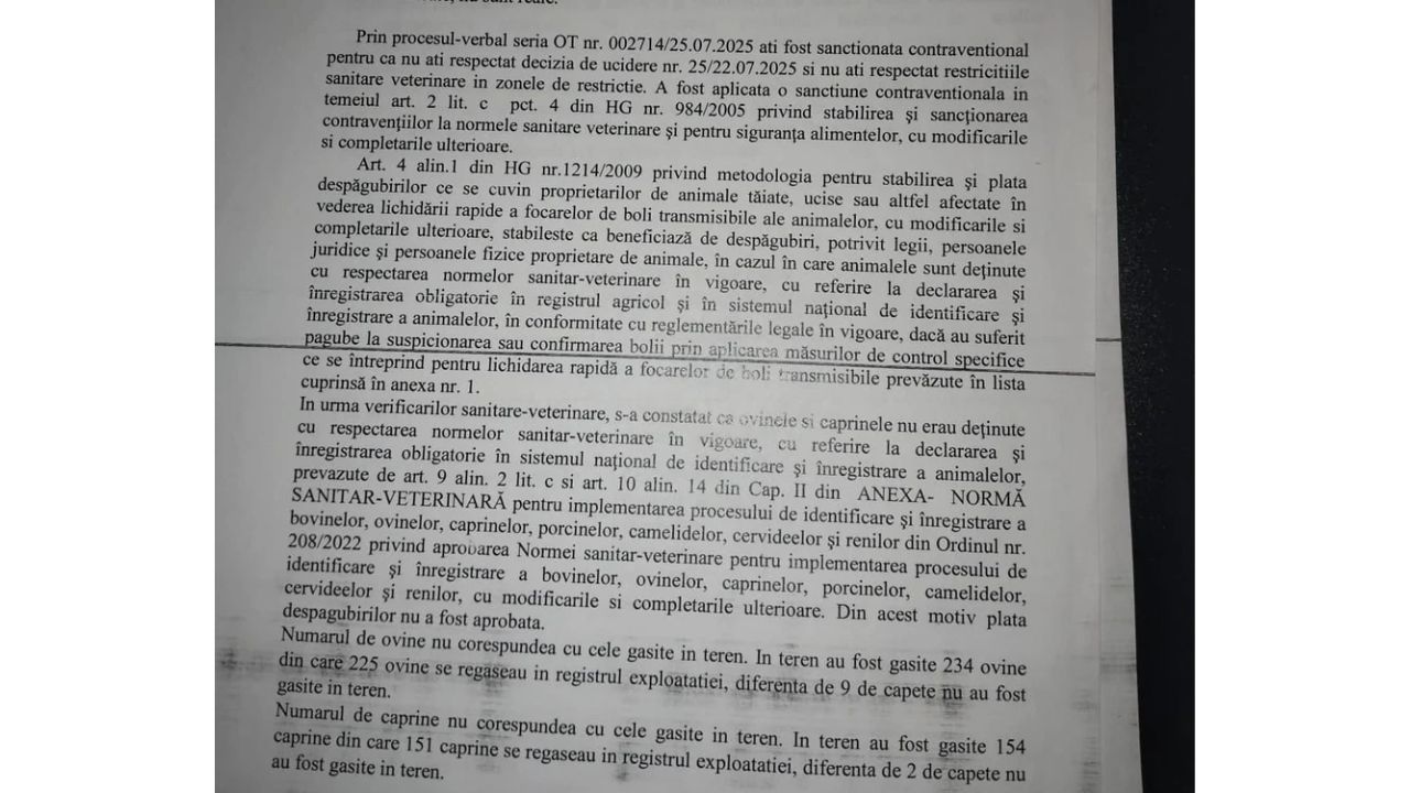 Dacă în cazul anumitor fermieri s-a invocat diferența între numărul de animale înregistrate în Baza Națională de Date (BND) și animalele efectiv găsite în fermă, în cazul Alexandrei Burcea, de exemplu, s-a menționat sancțiunea contravențională care i-a fost aplicată pentru că s-a opus uciderii caprelor și nu ar fi respectat, astfel, restricțiile sanitare veterinare în zonele de restricție. De asemenea, autoritățile veterinare ar fi găsit în ziua în care s-a efectuat uciderea animalelor mai puține oi decât figurau în registrul exploatației. Oamenii au încercat să explice că între momentul în care infecția a început să se manifeste la oi și cel în care s-a procedat la uciderea întregului efectiv au mai murit animale afectate de variolă, cadavrele fiind, de altfel, îngropate cu știința și sprijinul reprezentanților primăriei. În cazul caprelor, pentru care proprietara a insistat să nu se ia măsura uciderii, caprele fiind îngrijite separat de oi și neprezentând vreun semn de boală, diferența între cele găsite în teren (mai multe) și cele din registrul exploatației a fost, conform unui document DSVSA Olt, de doar două animale.
