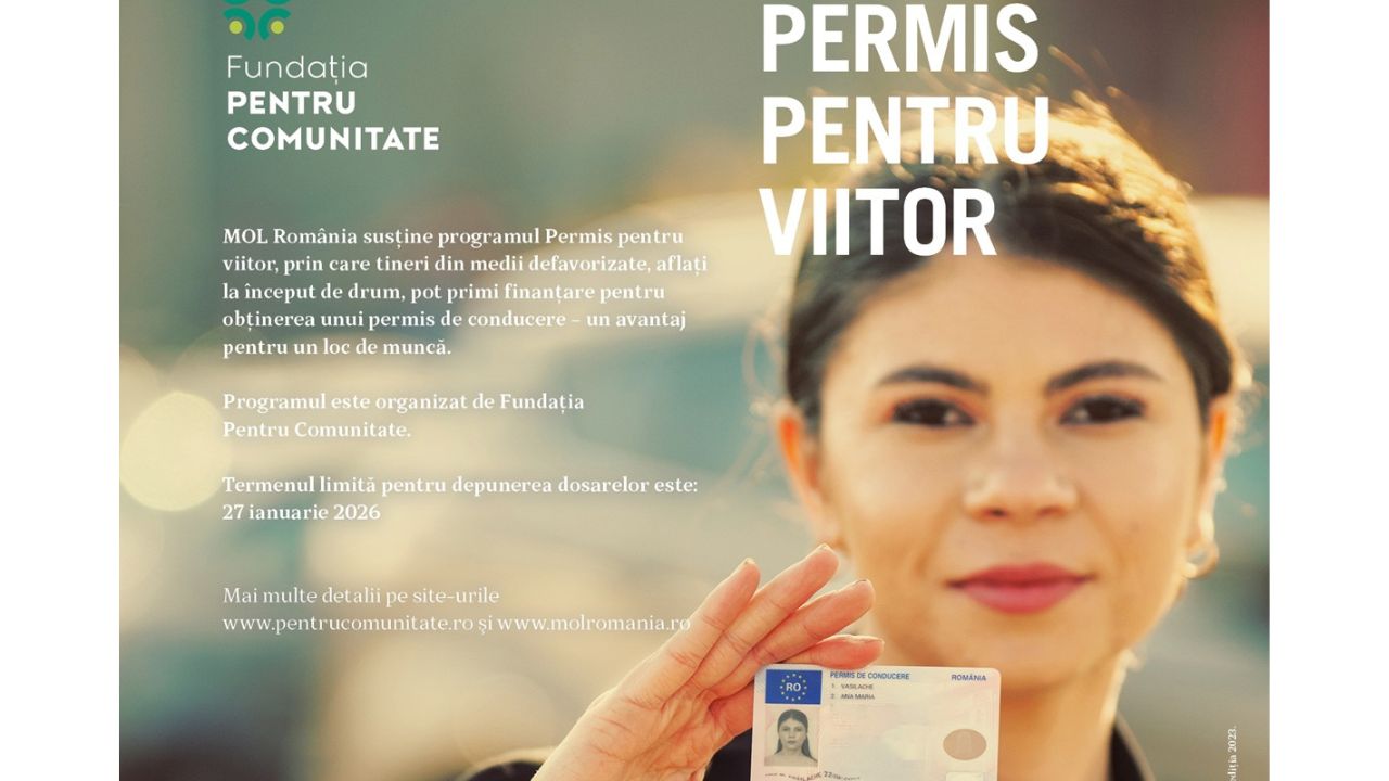 „Permis pentru viitor”: o șansă pentru tinerii din medii defavorizate acordată de MOL și Fundația Pentru Comunitate. Programul prin care se acoperă costurile școlii de șoferi pentru tinerii din medii defavorizate a ajuns la cea de-a 11-a ediție; Solicitările de finanțare pot fi depuse până la data de 27 ianuarie 2026. În decursul celor 10 ani de la lansarea programului au fost sprijiniți 412 de tineri pentru a urma cursurile școlii de șoferi pentru diferite categorii de permise de conducere.