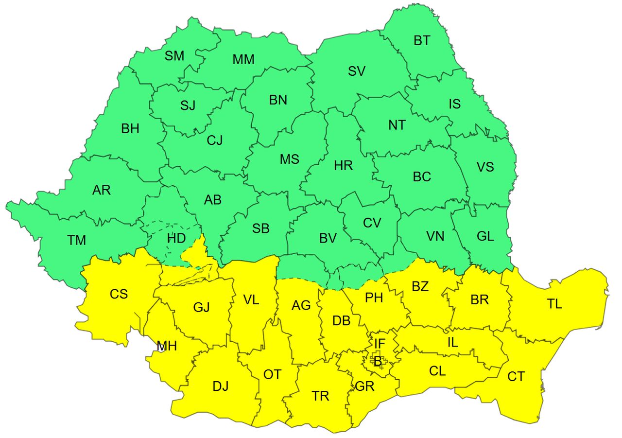 Zone afectate: Dobrogea, Muntenia, Oltenia și sudul Banatului