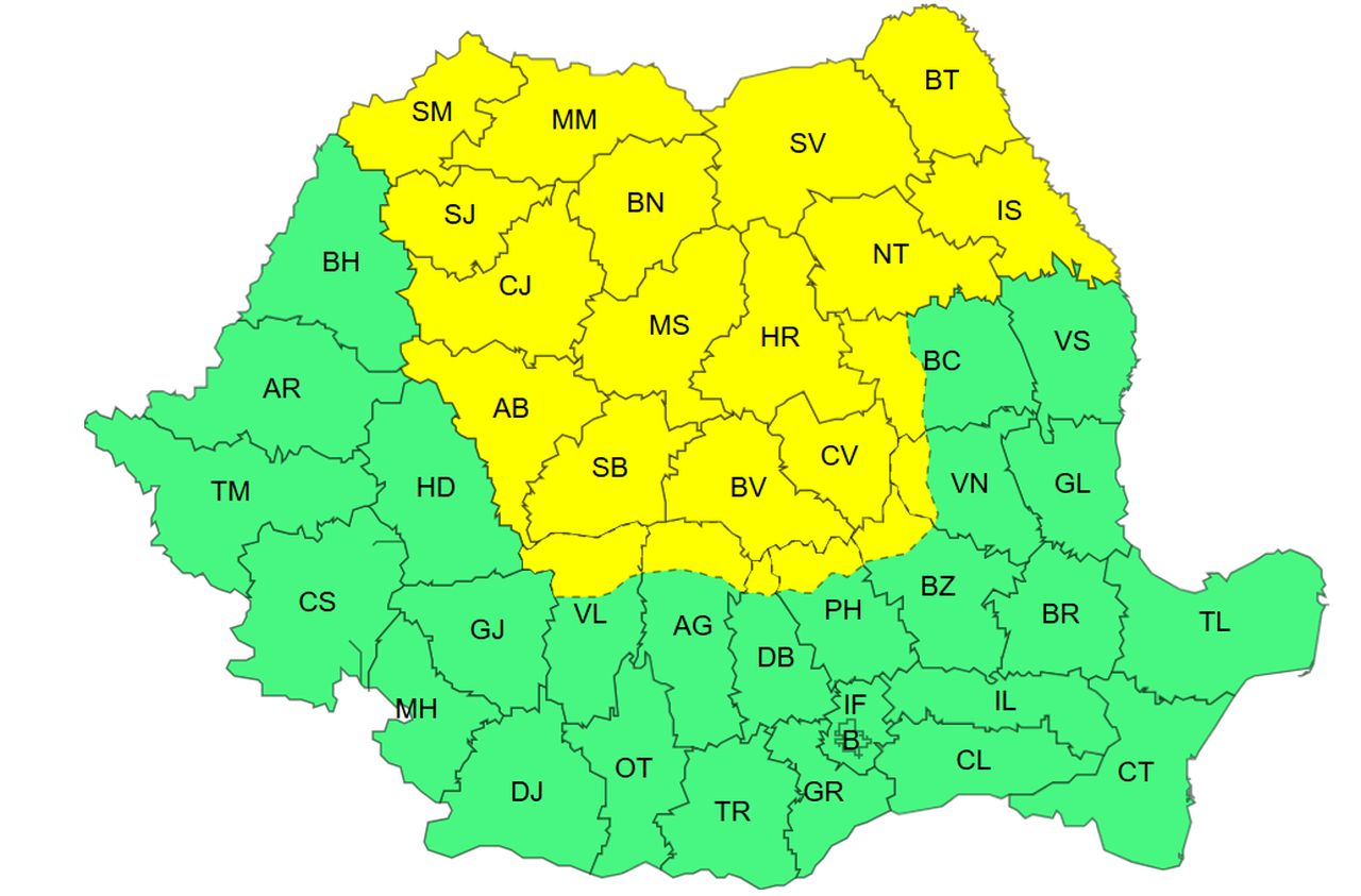 Zone afectate: Maramureș, cea mai mare parte a Transilvaniei, jumătatea de nord a Moldovei și zona de munte