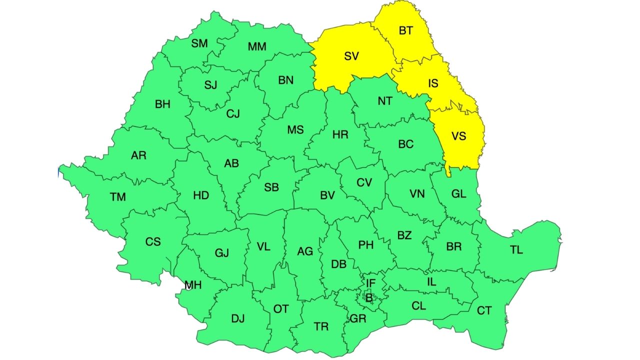 Vreme deosebit de rece, ger, precipitații, polei și vânt puternic prognozate în România. Tot finalul acestei săptămâni va fi caracterizat de fenomene specifice unei ierni dure, cu temperaturi care vor scădea până la minime de – 16 grade Celsius. Cod galben valabil în județele Suceava, Iași, Botoșani și Vaslui.