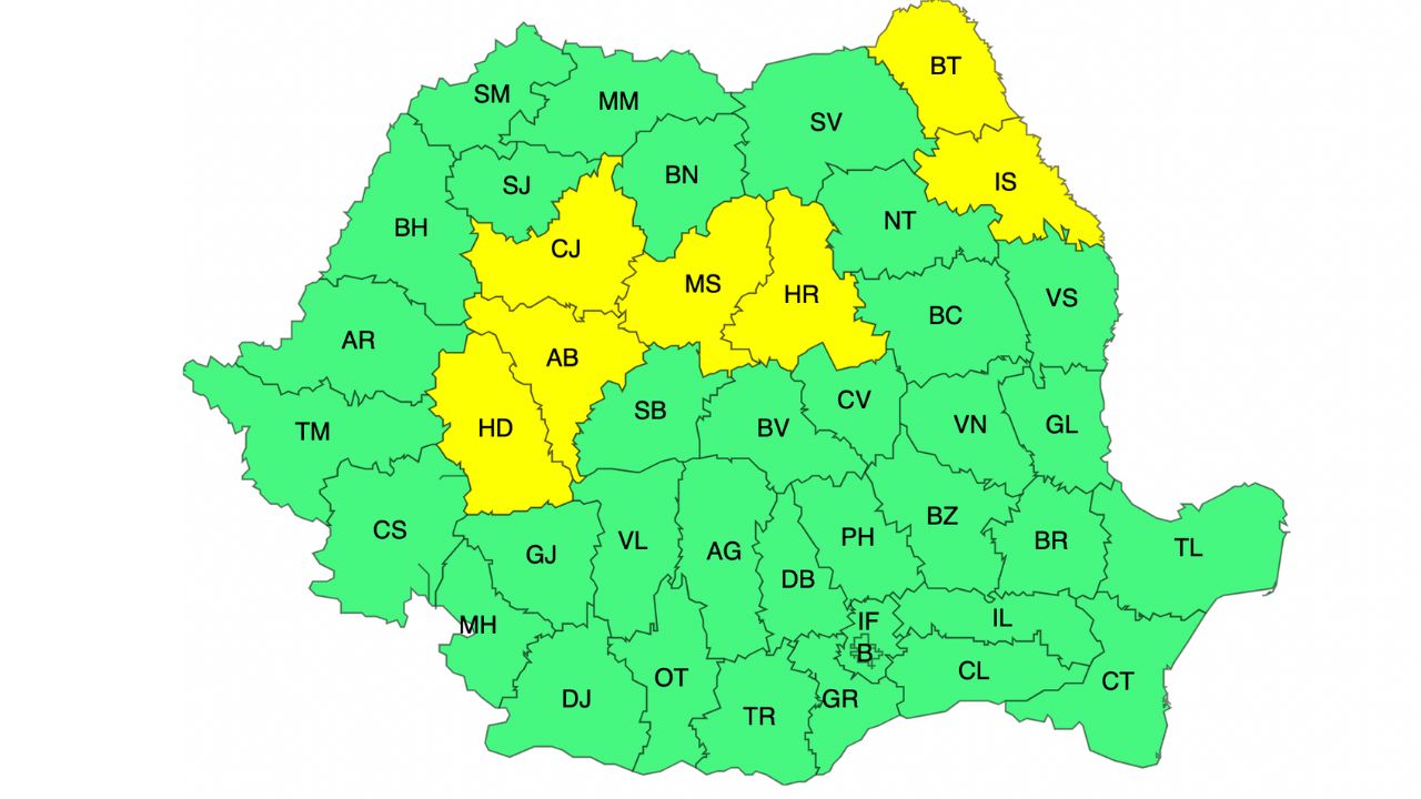 În județele Botoșani, Iași, Harghita, Mureș, Cluj, Alba și Hunedoara, vor continua să se înregistreze temperaturi deosebit de scăzute (în medie cu 5…9 grade mai mici decât cele normale datei), cu valori ce se vor încadra între -8 și -4 grade, mai scăzute până în jurul a -10 grade, pe văi și în depresiuni, unde gerul va persista.