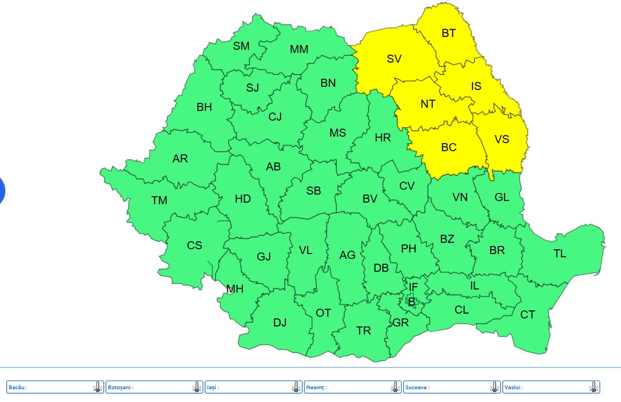 Pe lângă informarea generală, meteorologii au emis și două atenționări cod galben.