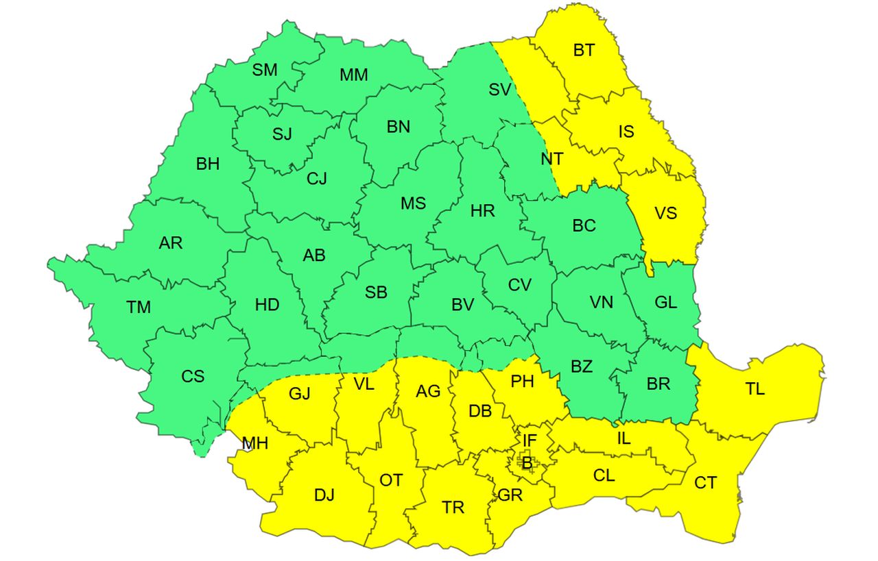 ANM precizează că mesajele pot fi actualizate în funcție de evoluția fenomenelor, inclusiv prin avertizări nowcasting.