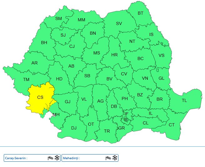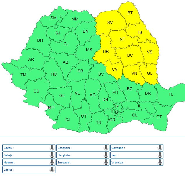 ANM mai avertizează că valorile termice vor fi sub mediile climatologice în regiunile extracarpatice și local în centrul țării.