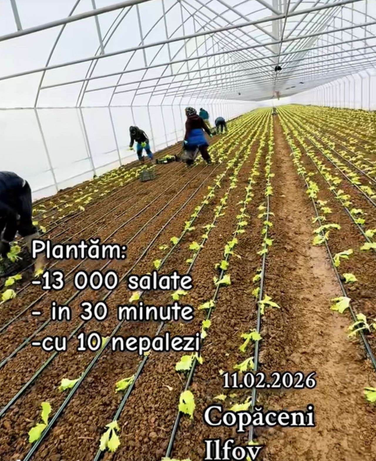 ”Plantăm 13.000 de salate în 30 de minute cu 10 nepalezi. Filmare din Copăceni, Ilfov în 11.02.2026”, așa se specifică pe filmarea care a fost publicată pe platforma Tik-Tok. Cunoscutul legumicultor din județul Olt, Ion Păunel, a intervenit și a făcut o serie de precizări cu privire la cât de posibil este ca această muncă să fie posibilă.