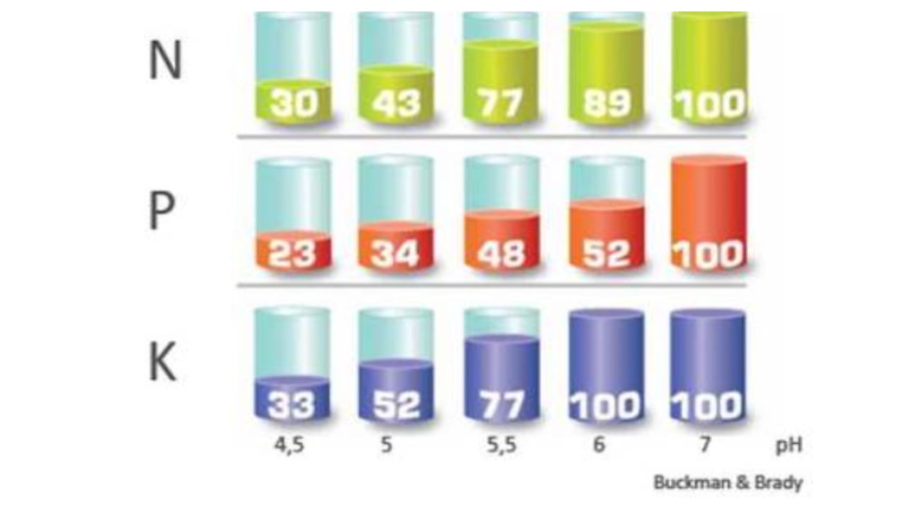 De exemplu, pe un sol cu un pH de 5,2, nu vom avea acces la 66% din cantitatea de ingredient activ de fosfor aplicată, iar atunci când aplicăm îngrășăminte cu conținut de azot, doar 43% din ingredientul activ total este utilizat, restul fie se levigă, fie scapă în atmosferă. În timpul perioadelor ploioase, efectul de levigare poate fi și mai pronunțat. În cazuri extreme, acest lucru ar putea însemna că, la aplicarea a 100 kg de DAP (18:46), doar 15 kg de ingredient activ P pot susține în mod eficient creșterea culturilor agricole, iar pentru suplimentarea cu azot, practic, am lucra cu doze înjumătățite pentru toate tipurile de îngrășăminte.