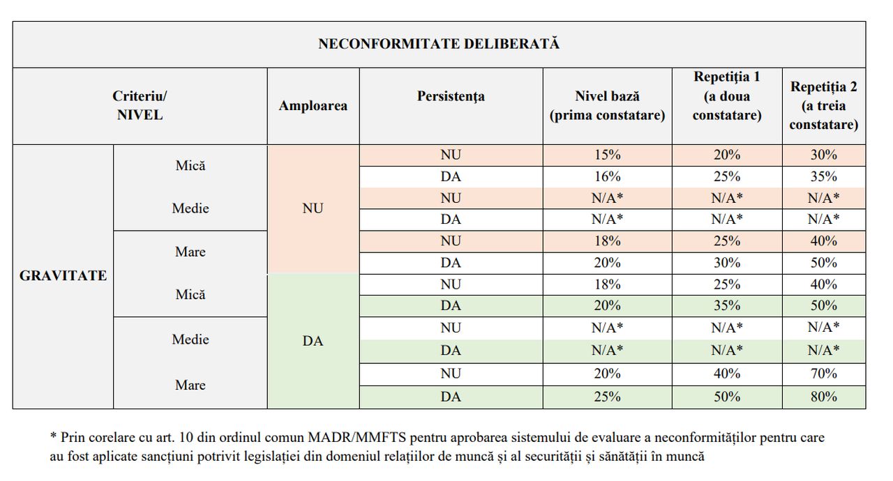 Nivelul sancțiunilor administrative se stabilește pe baza tuturor neconformităților identificate pe parcursul unui an calendaristic.