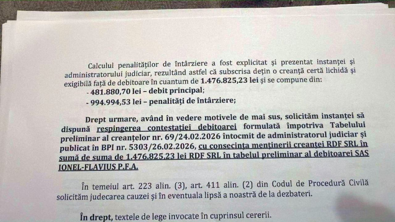 ”RDF este în insolvență și este administrată de un administrator judiciar. Împotriva fermierului Sas Flavius a fost aprobată de instanță și deschisă procedura insolvenței. În cadrul procedurii s-au cerut penalități conform contractului, domnul Sas le-a contestat, iar instanța le-a redus la nivelul de 500.000 de lei. Oricine dorește să verifice starea de fapt a dosarului poate verifica la instanță. Problema este că RDF este în insolvență și din cauza fermierilor care nu și-au închis datoriile aferente anilor 2023 și 2024, iar acum administratorul judiciar recuperează prin toate mijloacele acele creanțe, deoarece în procedura insolvenței trebuie plătiți și creditorii RDF„, ne-a transmis Florin Deznan cu privire la cazul fermierului Flavius Sas.