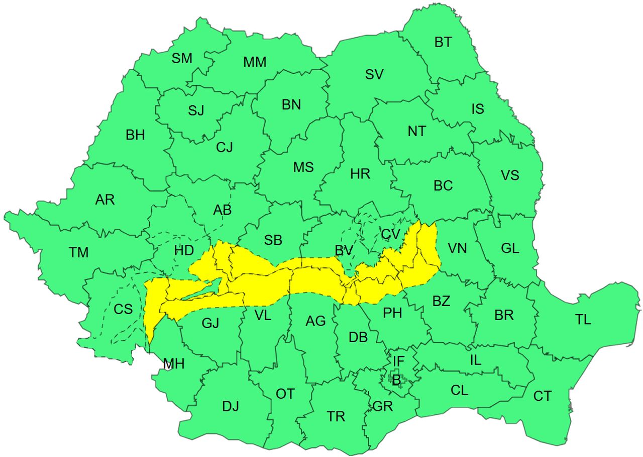 Zone afectate: Carpații Meridionali și Carpații de Curbură
