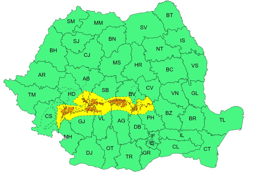 Zone avertizate: Carpații Meridionali și de Curbură, la altitudini mai mari de 1600 m