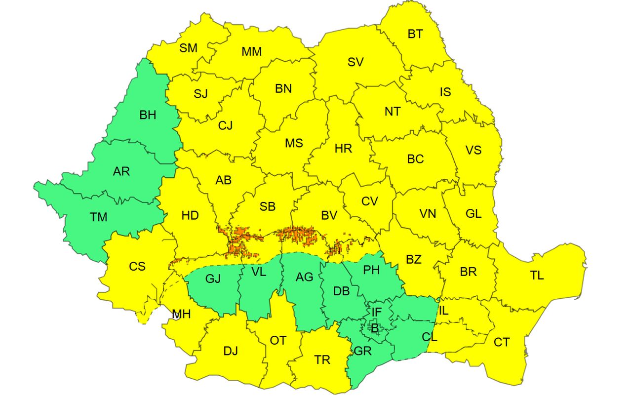 Zone avertizate: Carpații Meridionali, la altitudini mai mari de 1600 m
